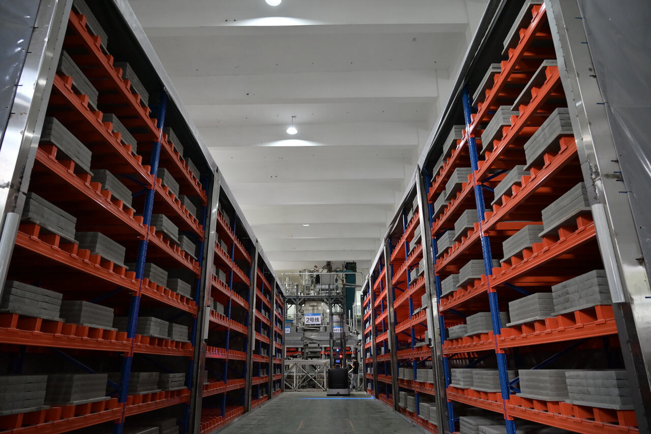 “最初的试验场,只是集团园区里的一个角落。”邵璋回忆道。四名科研人员围绕一台5吨压力机,日夜不停地调试配方与工艺参数,仅这一阶段就耗时半年。随着实验推进,设备从5吨、50吨、500吨逐步升级到1000吨压机,耐久性、抗压性等测试也在反复进行。四年间,团队相继突破“高速搅拌、改性分离、真空压制、免烧固化、快速养护”等关键技术环节,累计投入资金超过一亿元,最终实现了从技术到产业的跨越。
