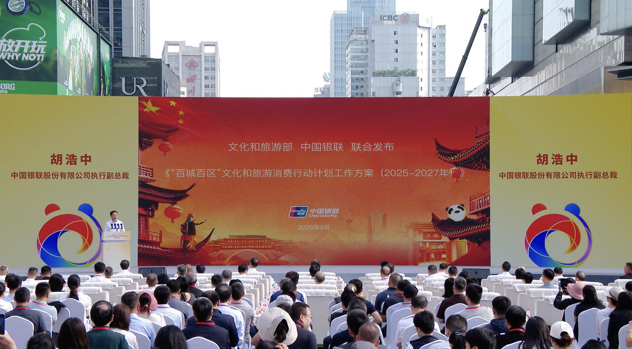 浙江在线10月16日讯(通讯员 马杉)日前,中国银联参与文化和旅游部在四川成都举办的2025年全国国庆文化和旅游消费月主场活动,中国银联执行副总裁胡浩中正式发布《“百城百区”文化和旅游消费行动计划工作方案(2025-2027)》。中华全国总工会、四川省人民政府、各省(区、市)文化和旅游行政部门及总工会、文旅平台企业等单位参加主场活动。