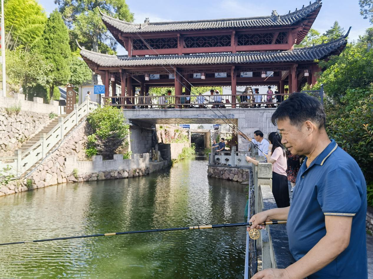 图为游客在天山村溪边享受垂钓乐趣。朱品强/摄