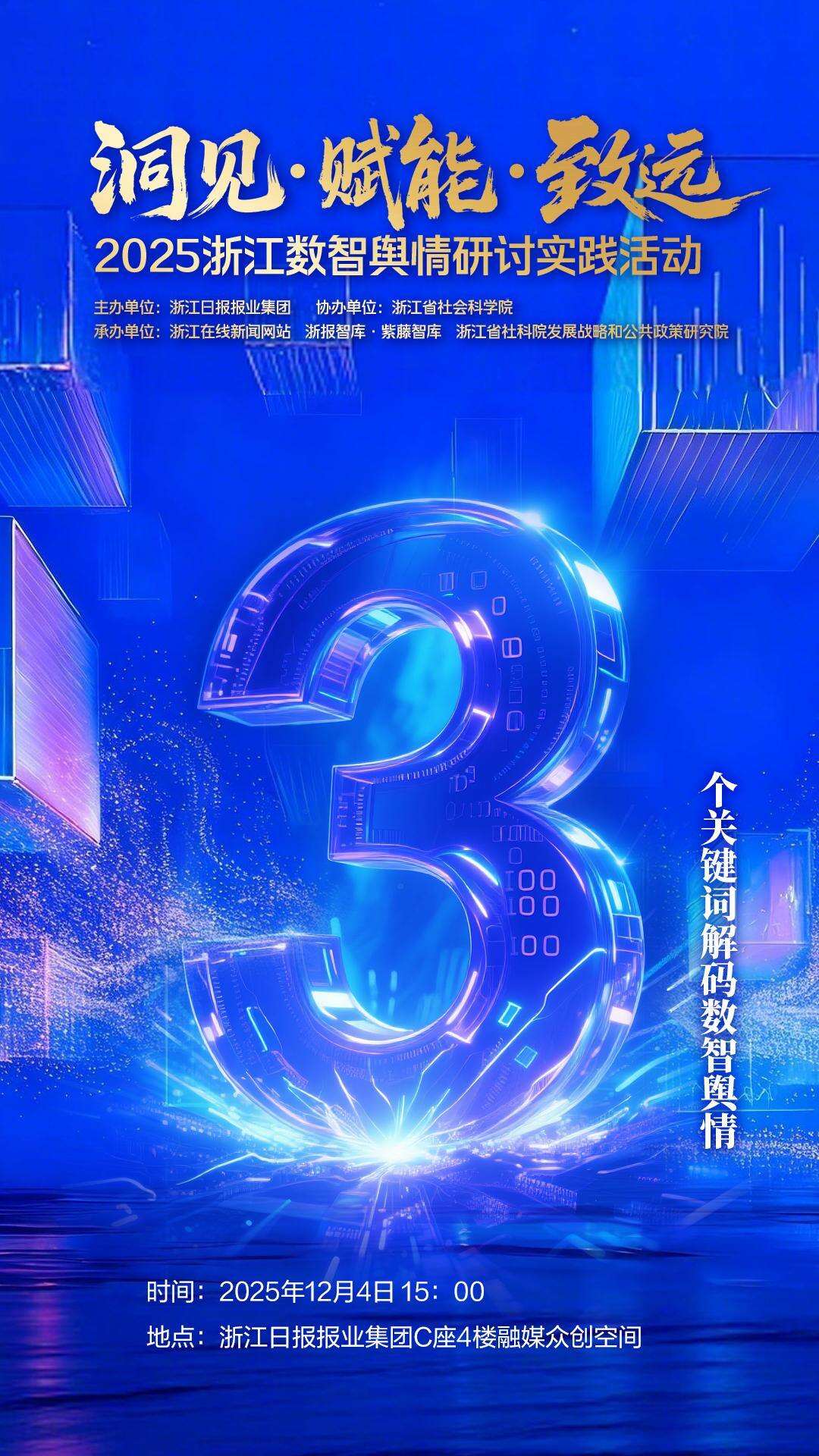 浙江在线12月1日讯(记者 周梅)12月4日,2025浙江数智舆情研讨实践活动将在杭州召开。活动以“洞见 赋能 致远”为主题,探讨构建人工智能驱动、主流媒体引领、智库资源融合的舆情协同治理格局。